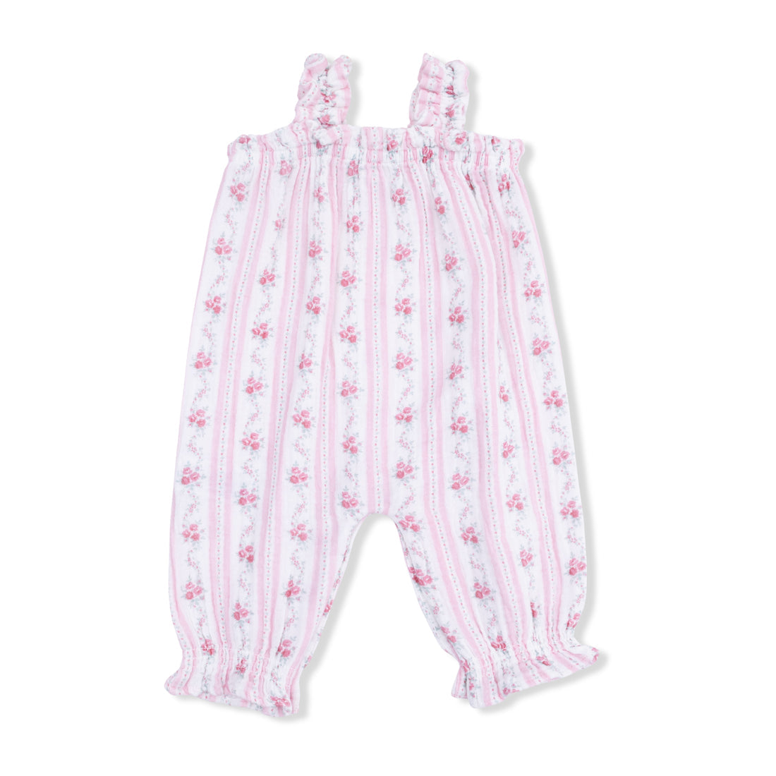 Baby Girl Jumpsuits and Rompers | Ruffly Overall- Winding Roses Stripes | Angel Dear
