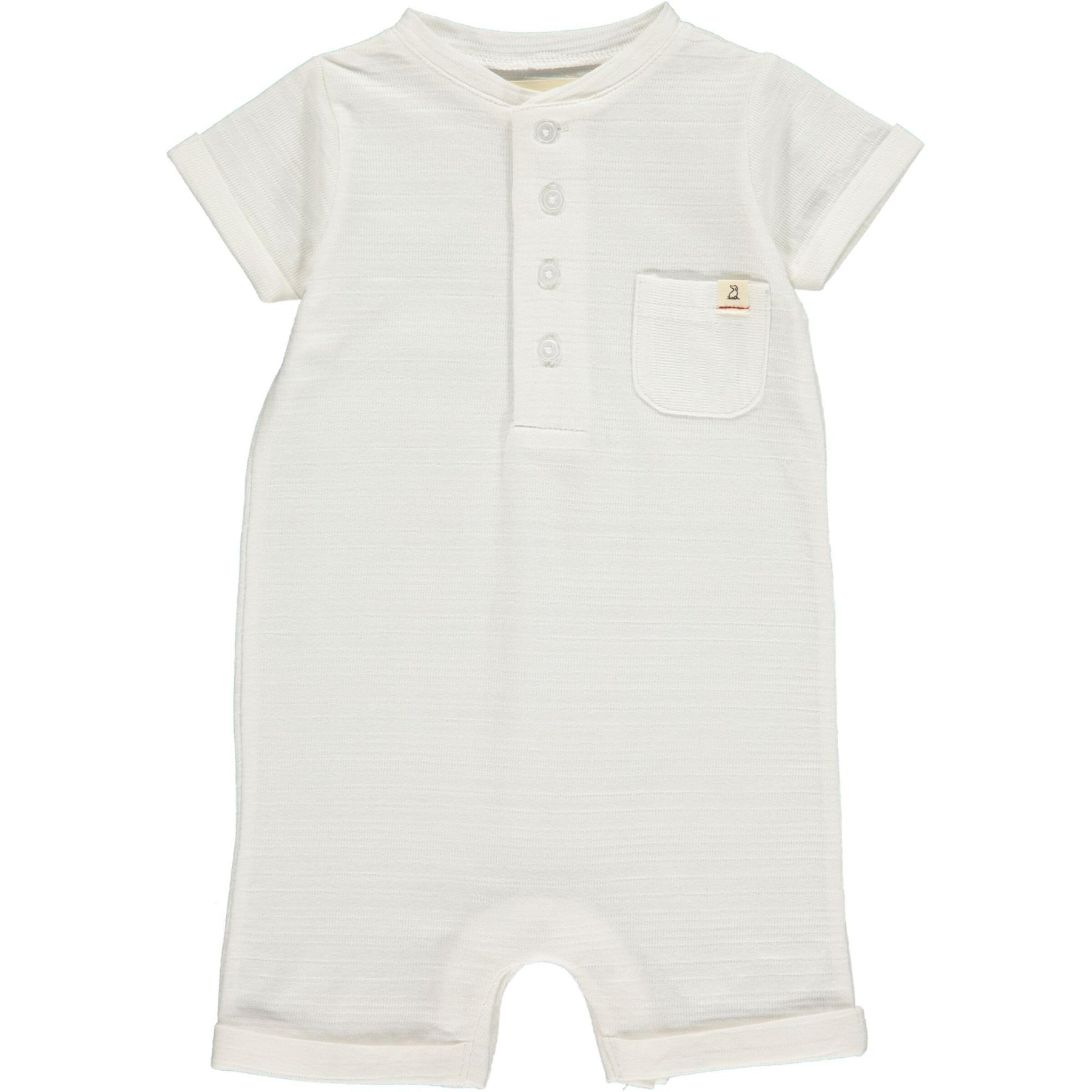 This Me and Henry Camborne Henley Romper is a best selling style. Parents love that this one piece romper has short sleeves, button front and bottom. The rolled up sleeves and shorts is a cute detail. This style is perfect a warm summer day.