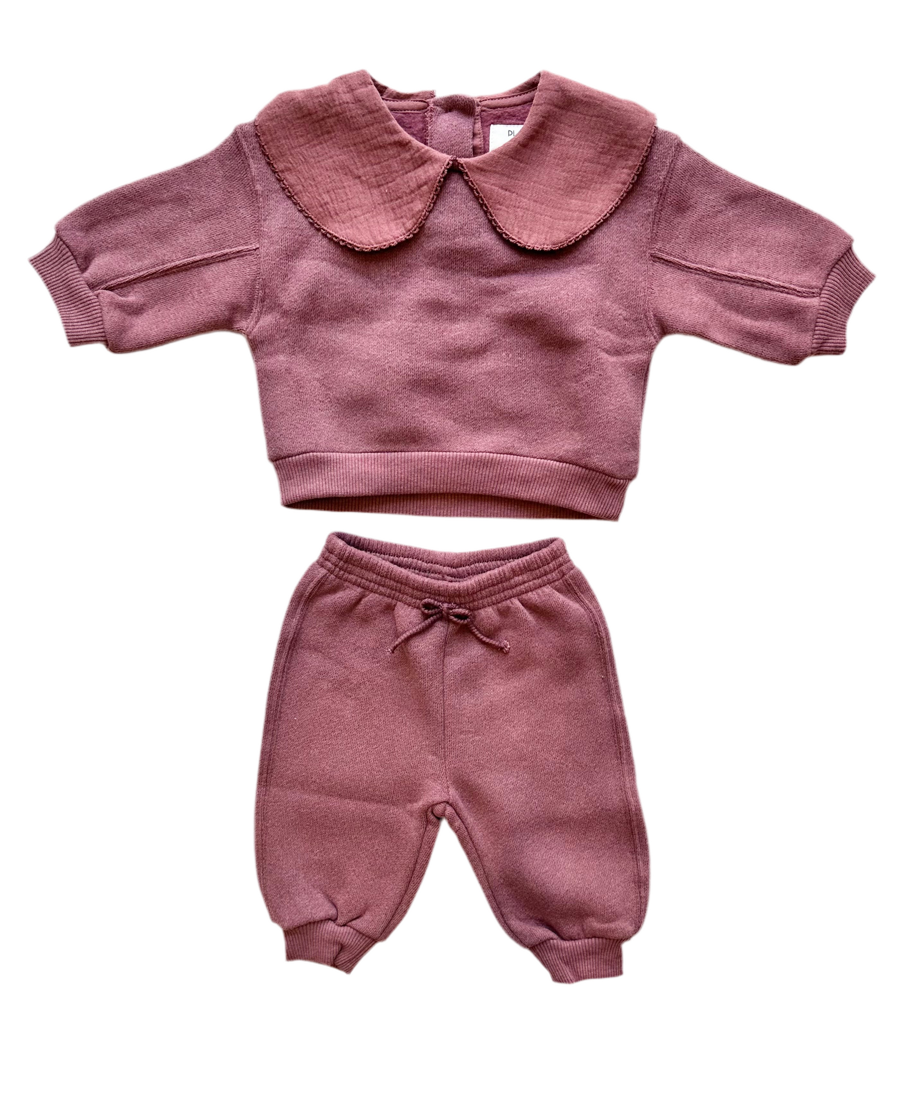 Keep your little one cozy and cute in this playful 2-piece set featuring a soft knit sweatshirt with an adorable girly collar and matching joggers. Made from responsibly sourced recycled cotton and polyester, it combines comfort with eco-friendly style—perfect for everyday adventures and snuggles.