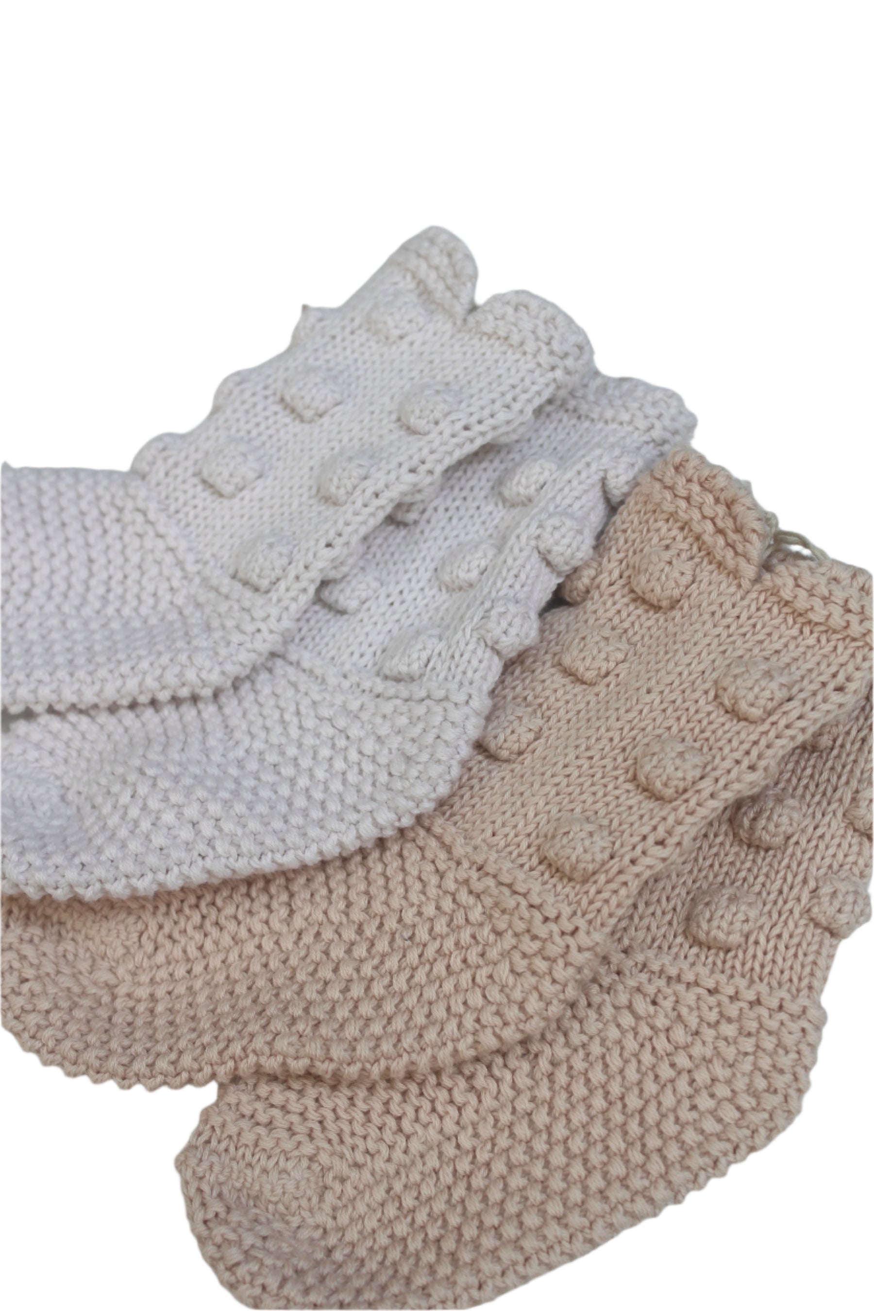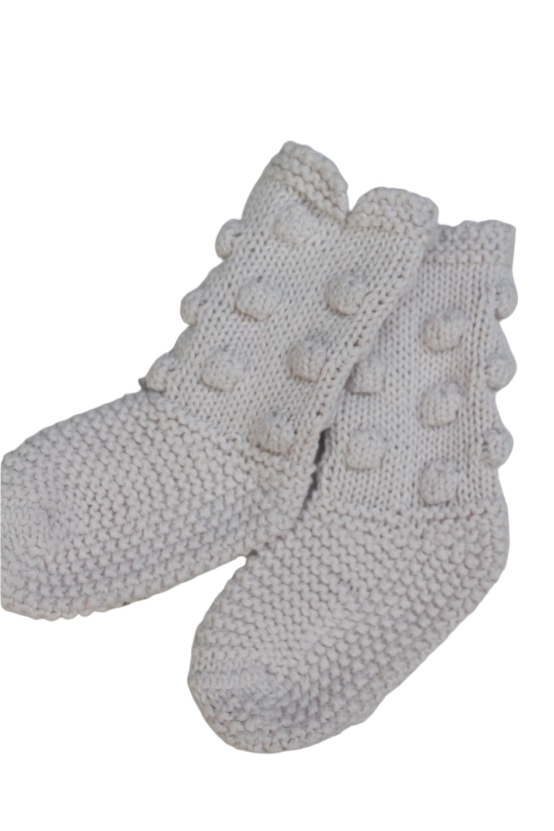 These cream pom pom knit booties bring vintage charm to your newborn’s wardrobe. Handmade in Spain with heirloom quality, they’re a cozy essential for tiny feet ready to explore. Soft, stylish, and full of playful spirit, they’re perfect for little ones from day one!