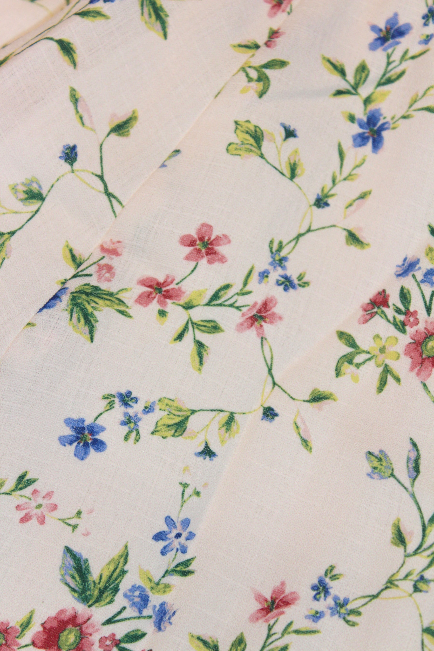 • Soft white fabric with a dainty floral print