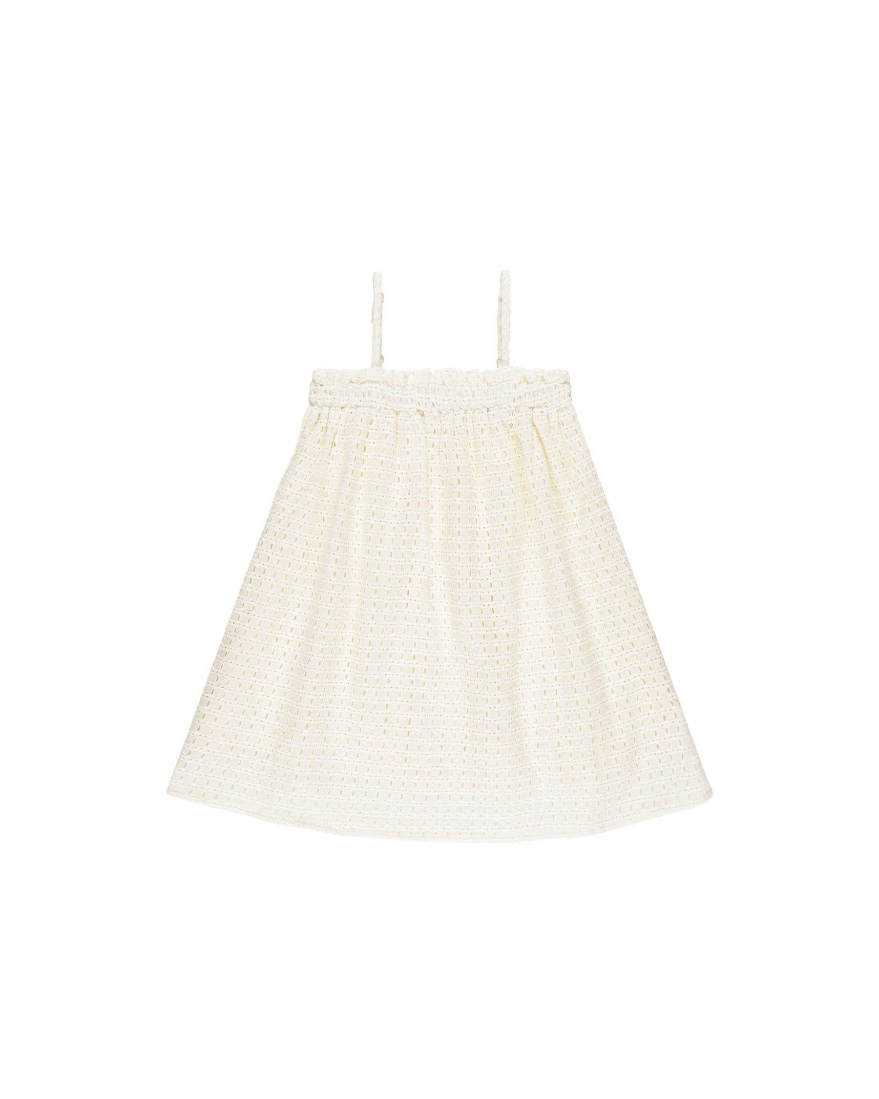 Our Sahara Mini Dress, designed in our delicate eyelet, features an elastic top band and adjustable straps for an easy on-the-go look.