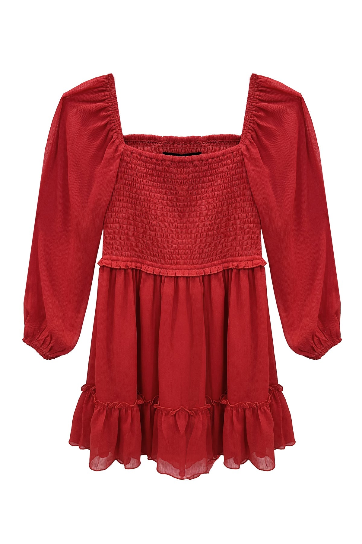 Red dress with long sleeves on a white background
