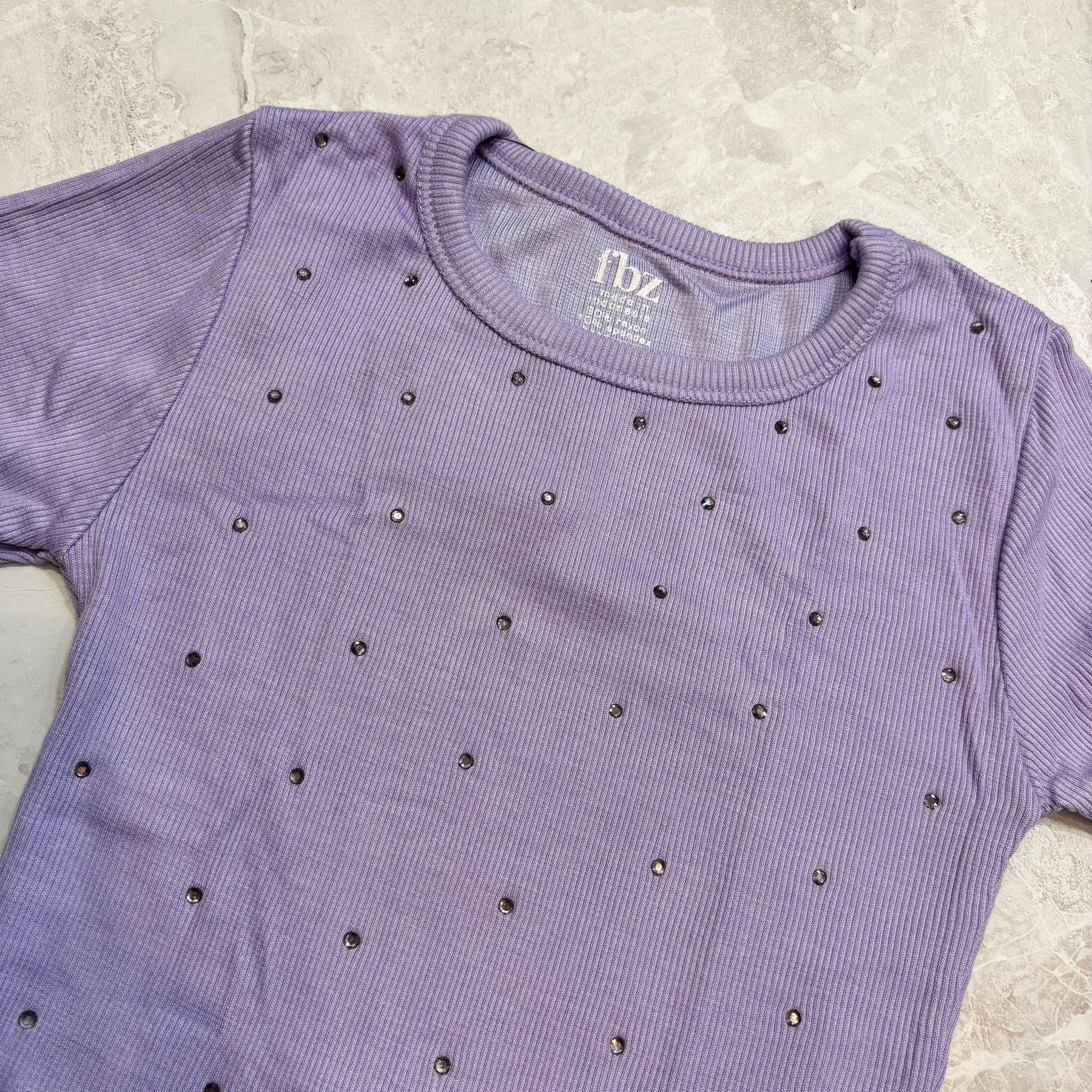 Add some fun to your tween's wardrobe with this studded light purple long sleeve top from Flowers by Zoe! Versatile enough to pair with skirts, leggings, or denim, this basic top features a crew neck and is made of 90% rayon and 10% spandex for ultimate comfort.