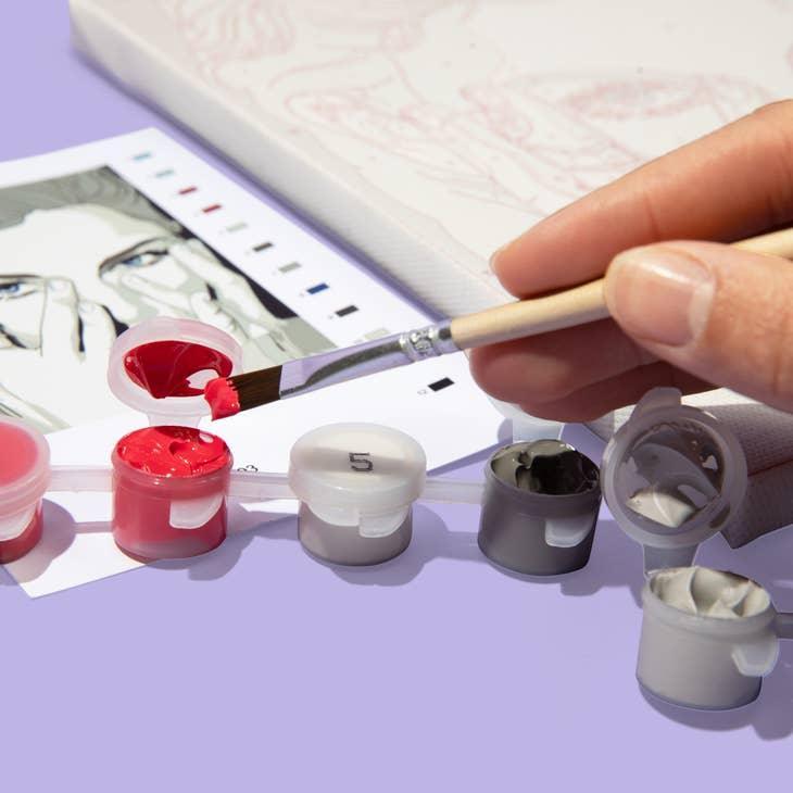 • Paint By Numbers Kits include one 8 x 10" canvas, paint brushes in various sizes, 12 numbered pots of paint and a guide to help you work.