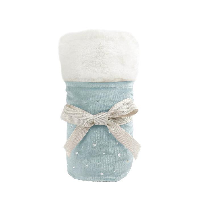 MON AMI Celestial velvet and faux fur blankets are heavenly. Backed with our signature lush fabric, the softness is unmatched. Exterior is velvet printed with a foil stars, this blanket is perfect all year round.