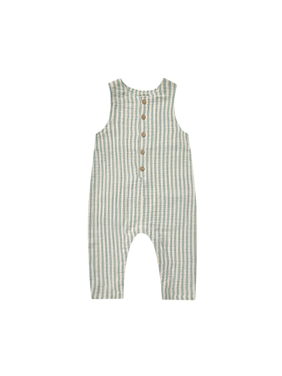 This everyday sleeveless jumpsuit is soft and breathable with snaps along front and bottom for easy changes.