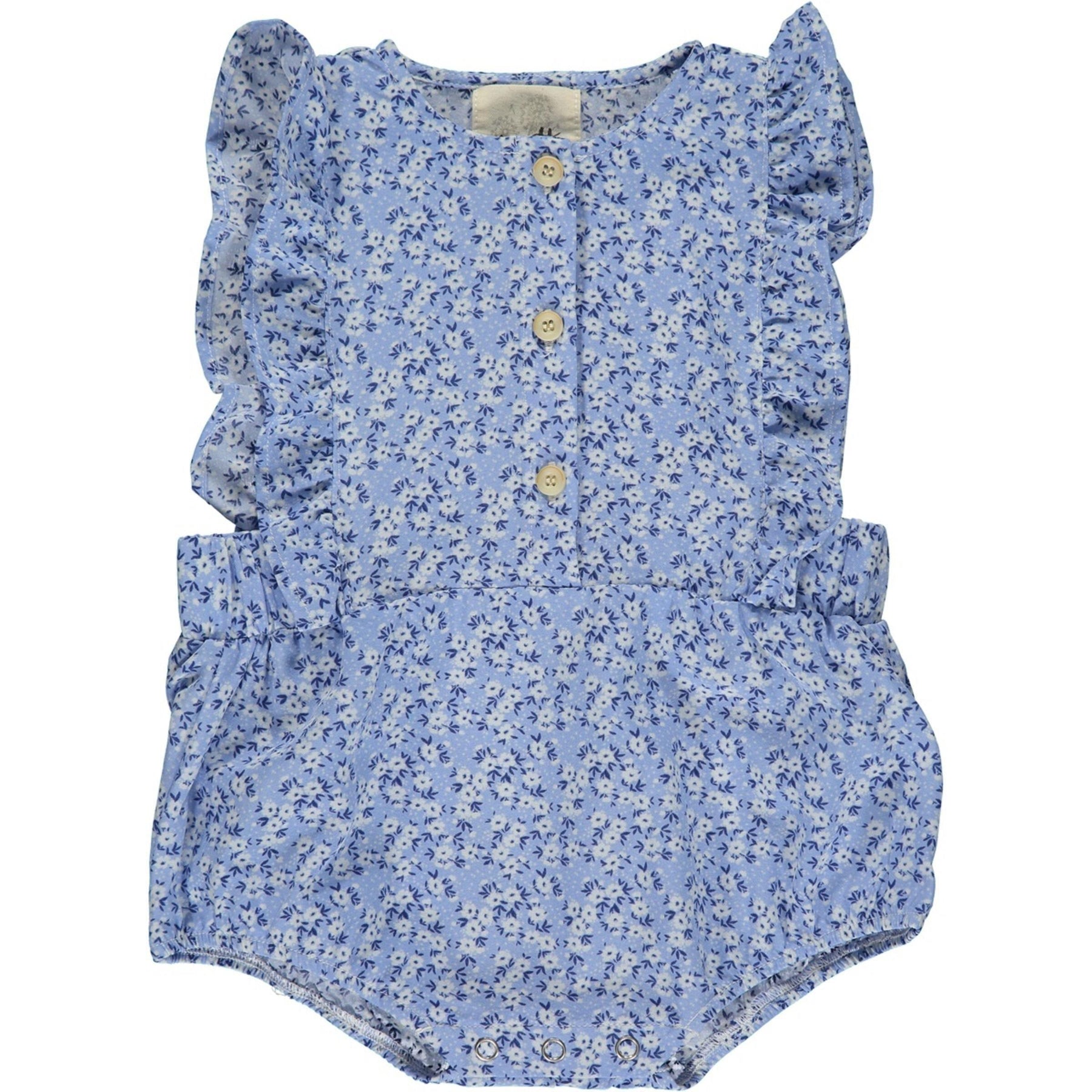 Vignette's Baby Megan Bubble is one of our top selling baby styles! We are excited to have it again in this new Blue Ditsy Floral print. It has the cutest ruffle sleeves and accent buttons that you'll love!