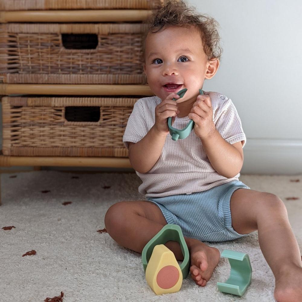 O.B. Design Silicone Stacker Avocado Tower is an open ended building toy. It's versatile, educational and will encourage eye hand coordination and creative thinking. It helps with motor development and dexterity.  All products ethically made and eco-friendly.