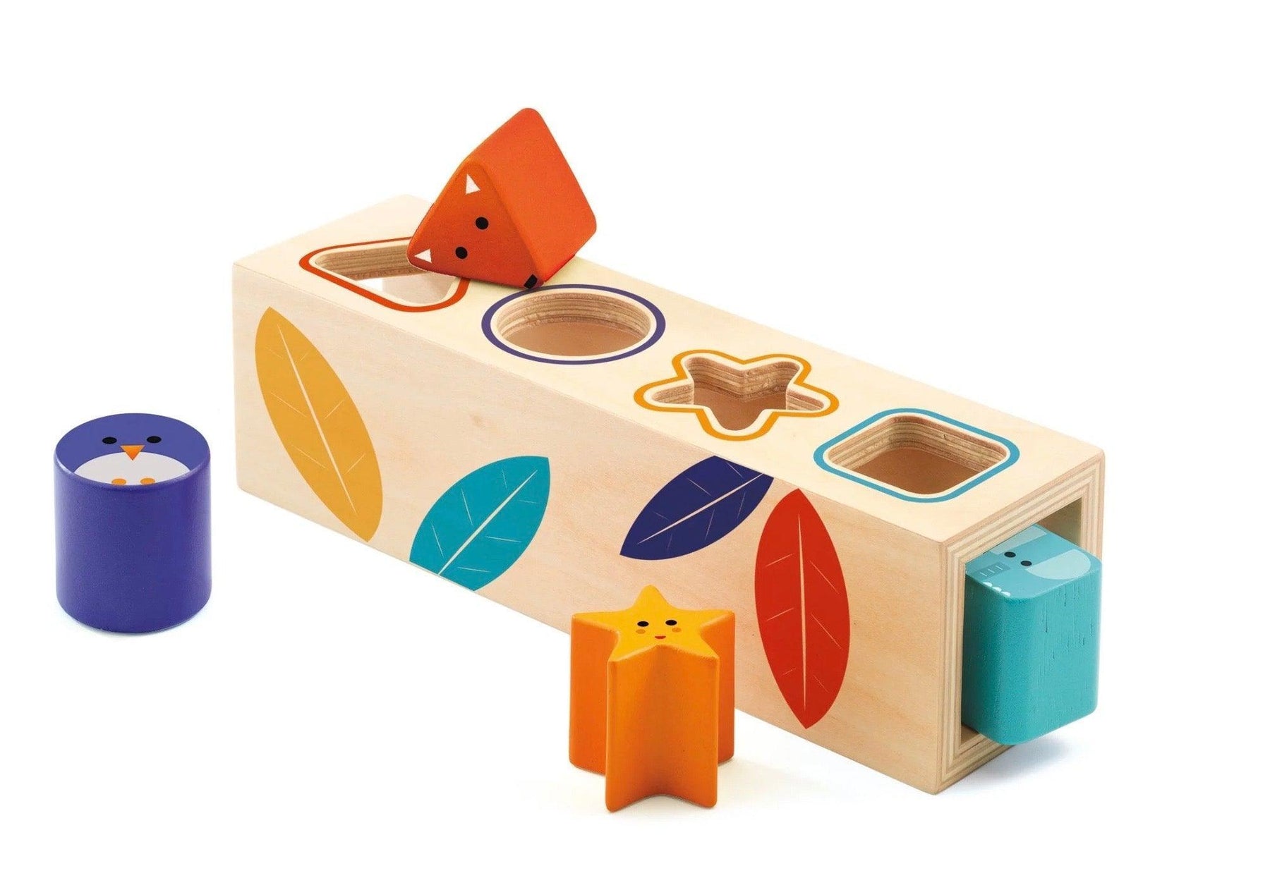 - Contents: 1 sorting box and 4 wooden shapes.