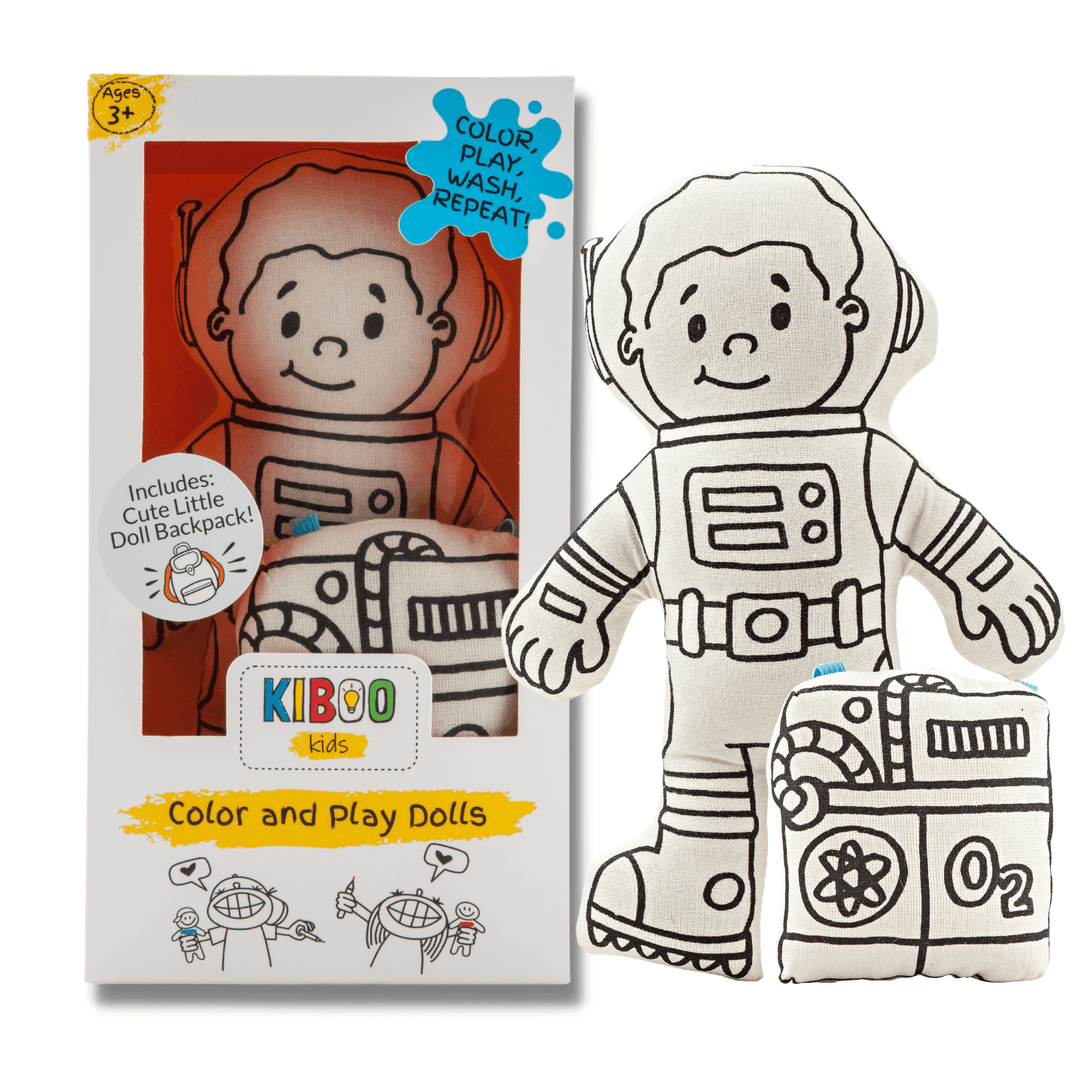 This Kids Crafts Kit comes with a doll featuring a Boy Astronaut and is made for kids to color and embark on pretend play. It also has a cute mini Astronaut Backpack that can be strapped to the doll, adding even more fun to the set.
