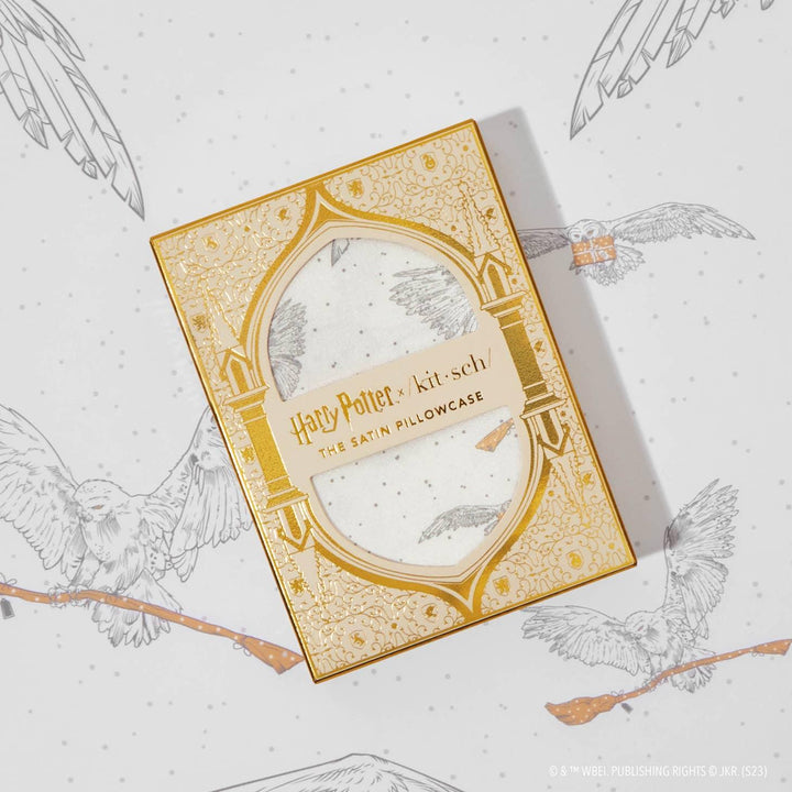 Welcome to Hogwarts! Our limited-edition Harry Potter x Kitsch pillowcase is perfect for witches, wizards, and muggles alike. Your beauty sleep awaits in mythical style with Hedwig, Harry's pet messenger owl keeping watch. Keep frizz & breakage in check with this soft satin, and keep breakouts away with its absorbent qualities. Plus, it won't leave any facial creases - spells for ultimate beauty rest!