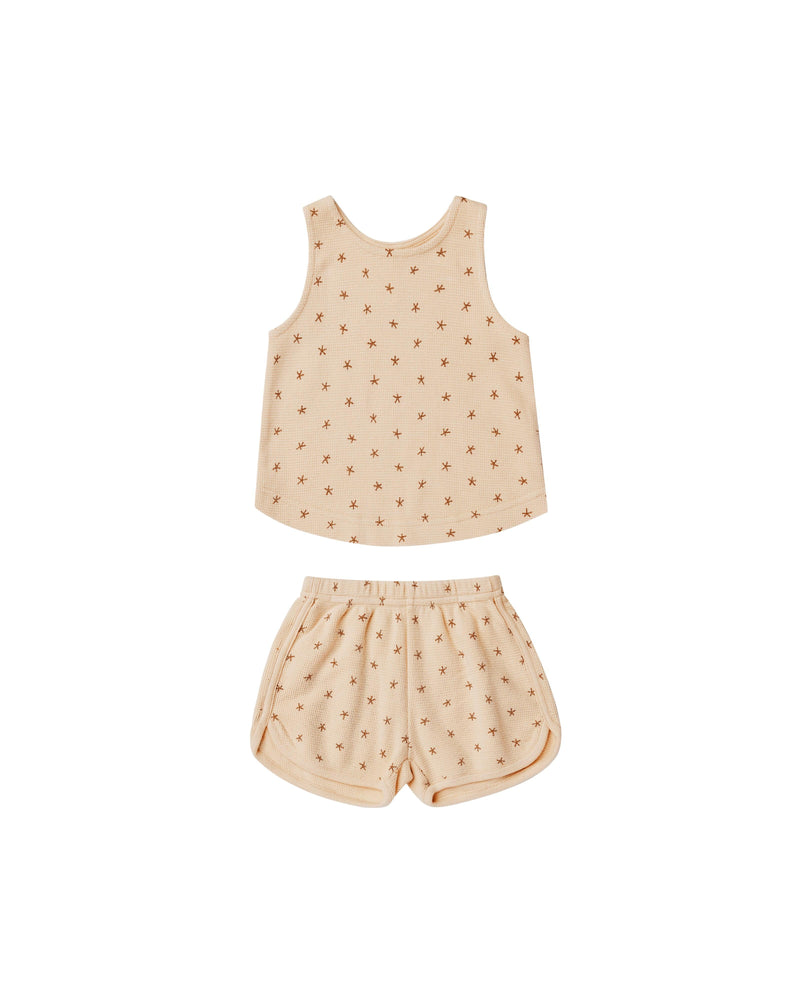 - The Kaycee Set incl tank top and shorts in soft printed waffle fabric includes a cropped
