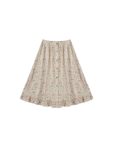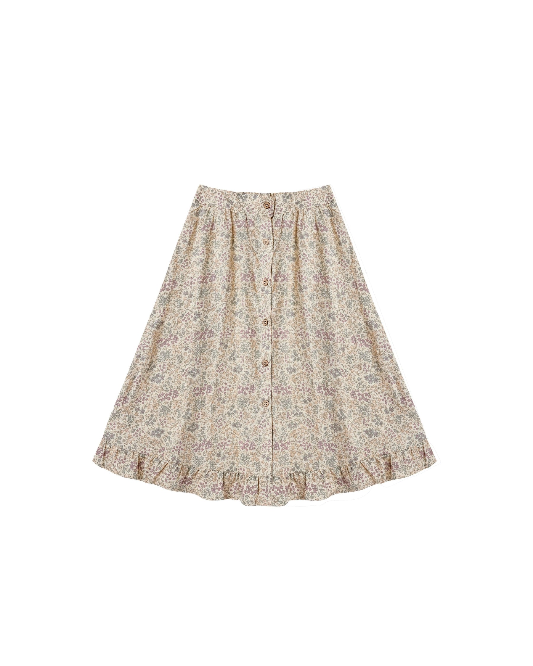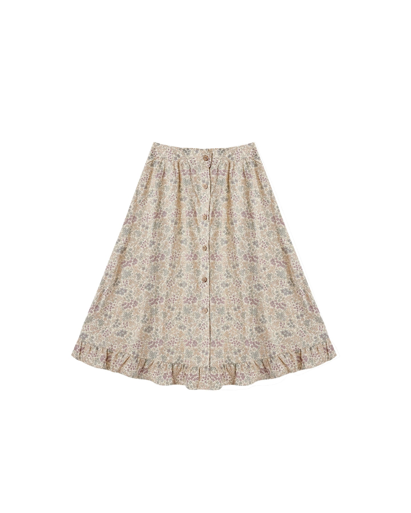 •  This button-front a-line skirt features side pockets and a ruffle trim at the bottom opening. Looks great with our coordinating Oceanside top!