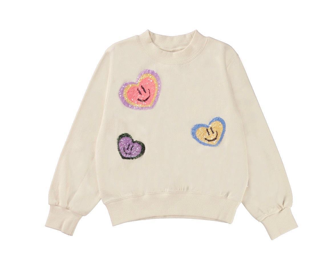Be the life of the room in this fun and funky Girls Sweatshirt from Molo. Off-white with dazzling aura hearts in sequins, it's the perfect way to express your belief in the wonders of the unseen world. Made from 100% organic cotton, it's comfortable and sustainable too! Keep it chill while being full of sparkle-wear your Marge Sweatshirt and light up the room!