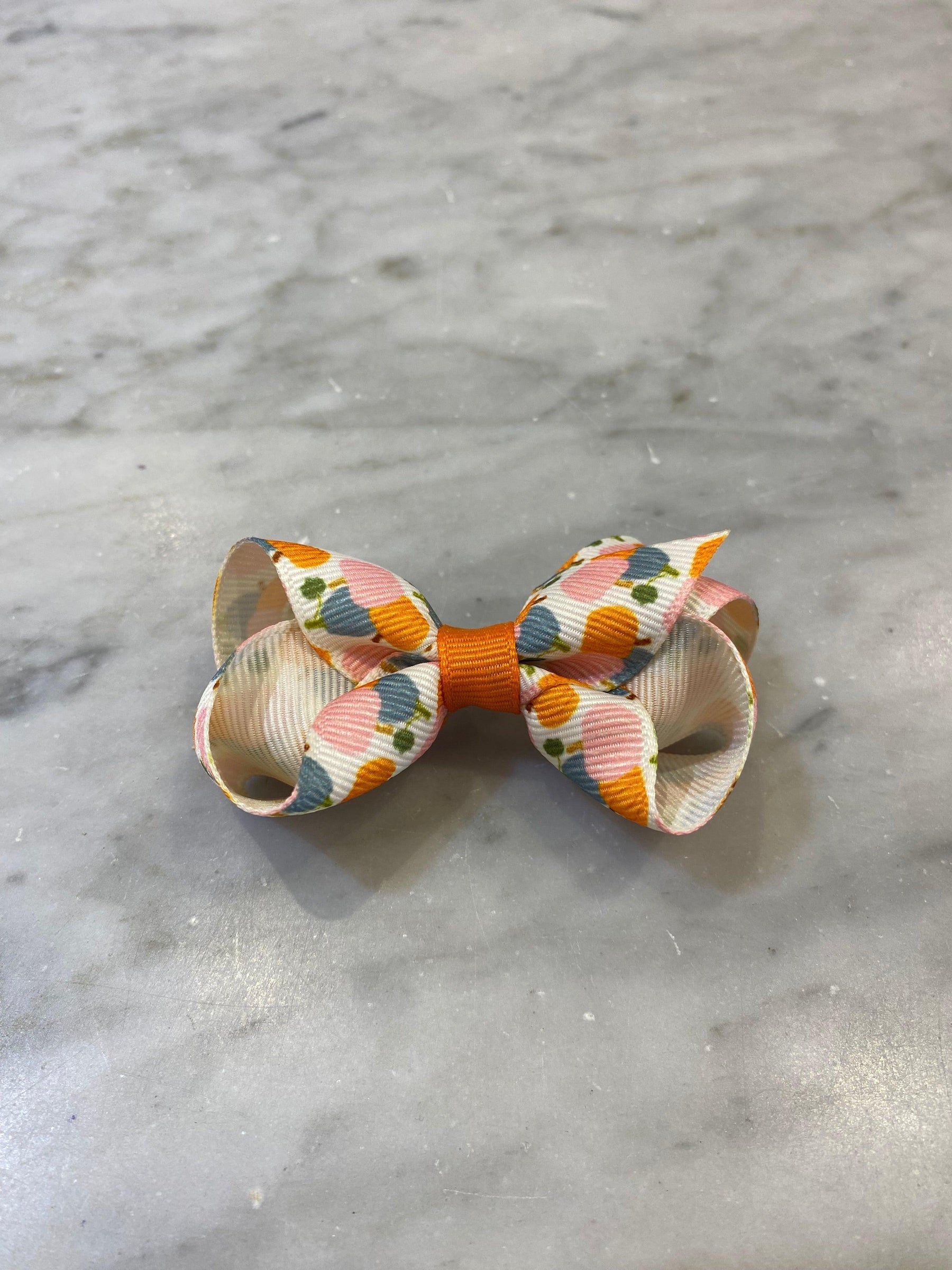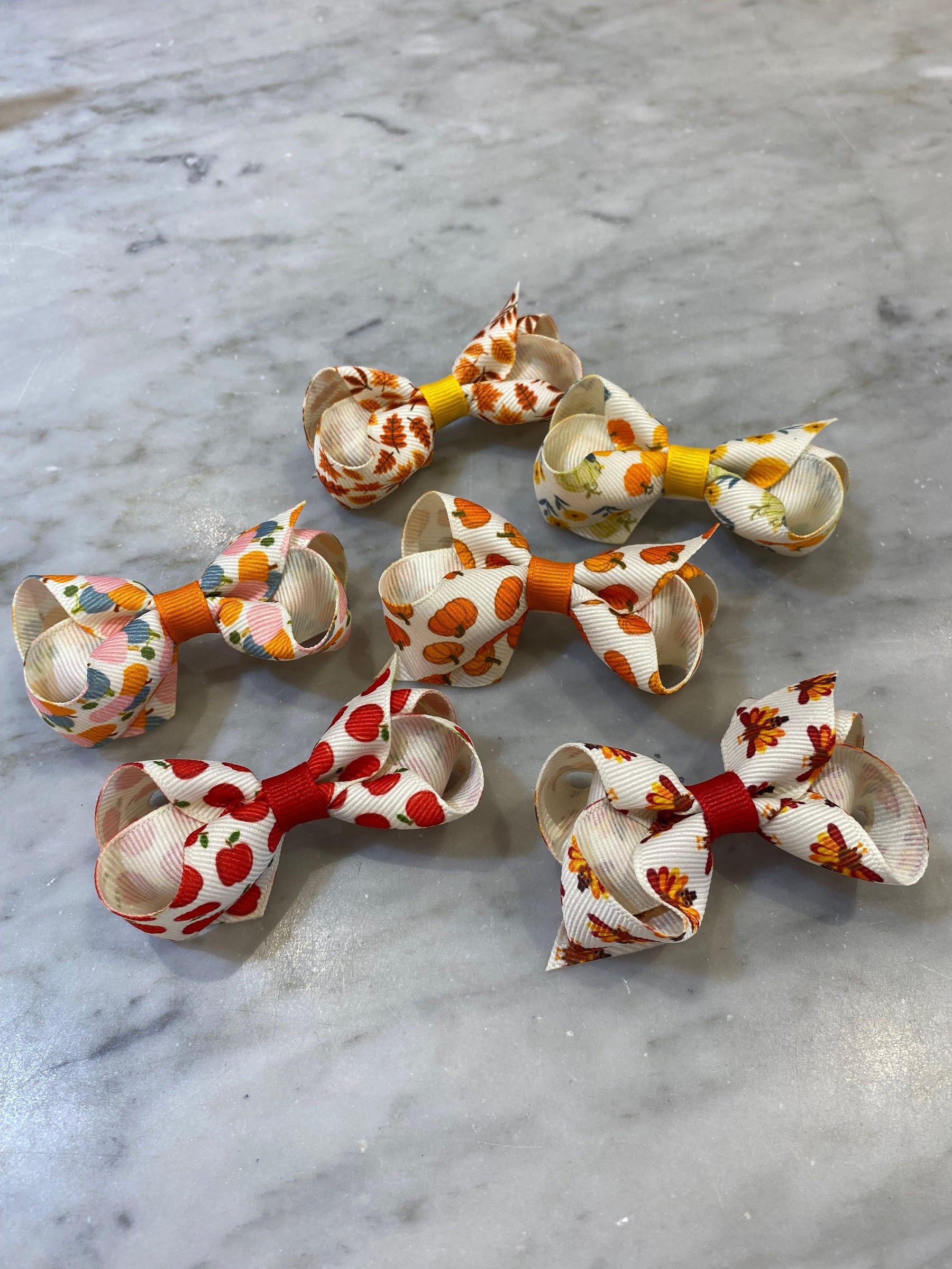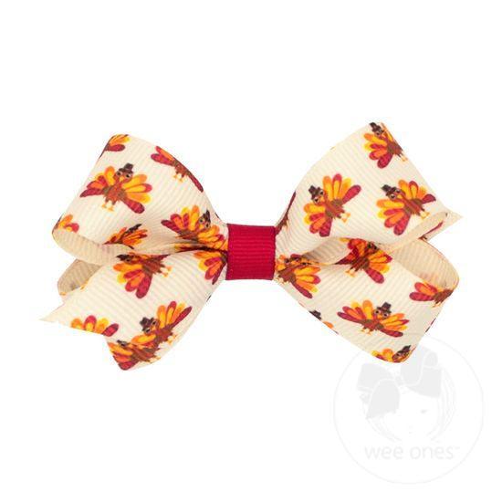 Complete your harvest-themed look with this fun Mini Hair Bow! Featuring fall prints of pumpkin patches, apple picking, and corn mazes, you'll be ready for a season of fun. The grosgrain fabric stands up to wear and tear for long-lasting enjoyment. This bow is sure to stay in her hair all day with our patented WeeStay™ no-slip hair clip.