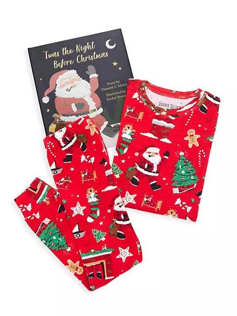 This set features a hardcover book of Twas the Night Before Christmas and includes pajamas printed with motifs from the story.