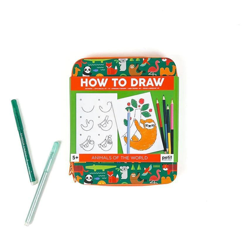 This activity set offers little ones a step-by-step guide to drawing animals of all sizes. From penguins to sloths to narwhals, it's a wild world out there! Art supplies, including an instruction pad, blank paper, 4 double-sided colored pencils, and 1 HB pencil, comes in a durable zippered keepsake tin. Perfect for artists on the go!