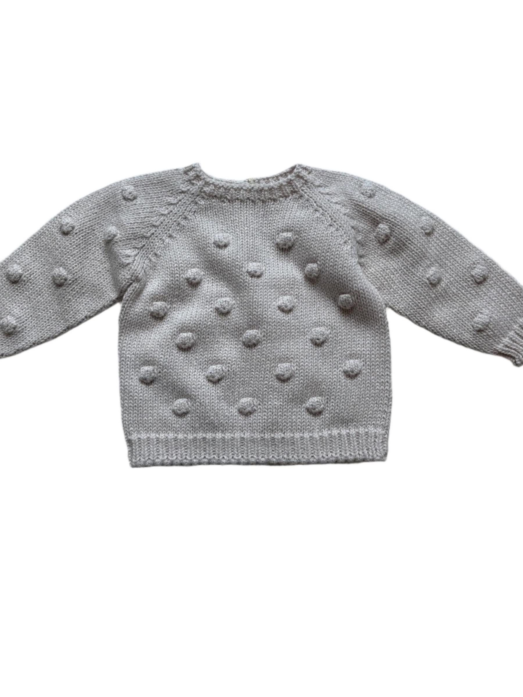 Baby Unisex Sweater | Knit Sweater- Pom Pom Cardigan- Cream | Li and Me