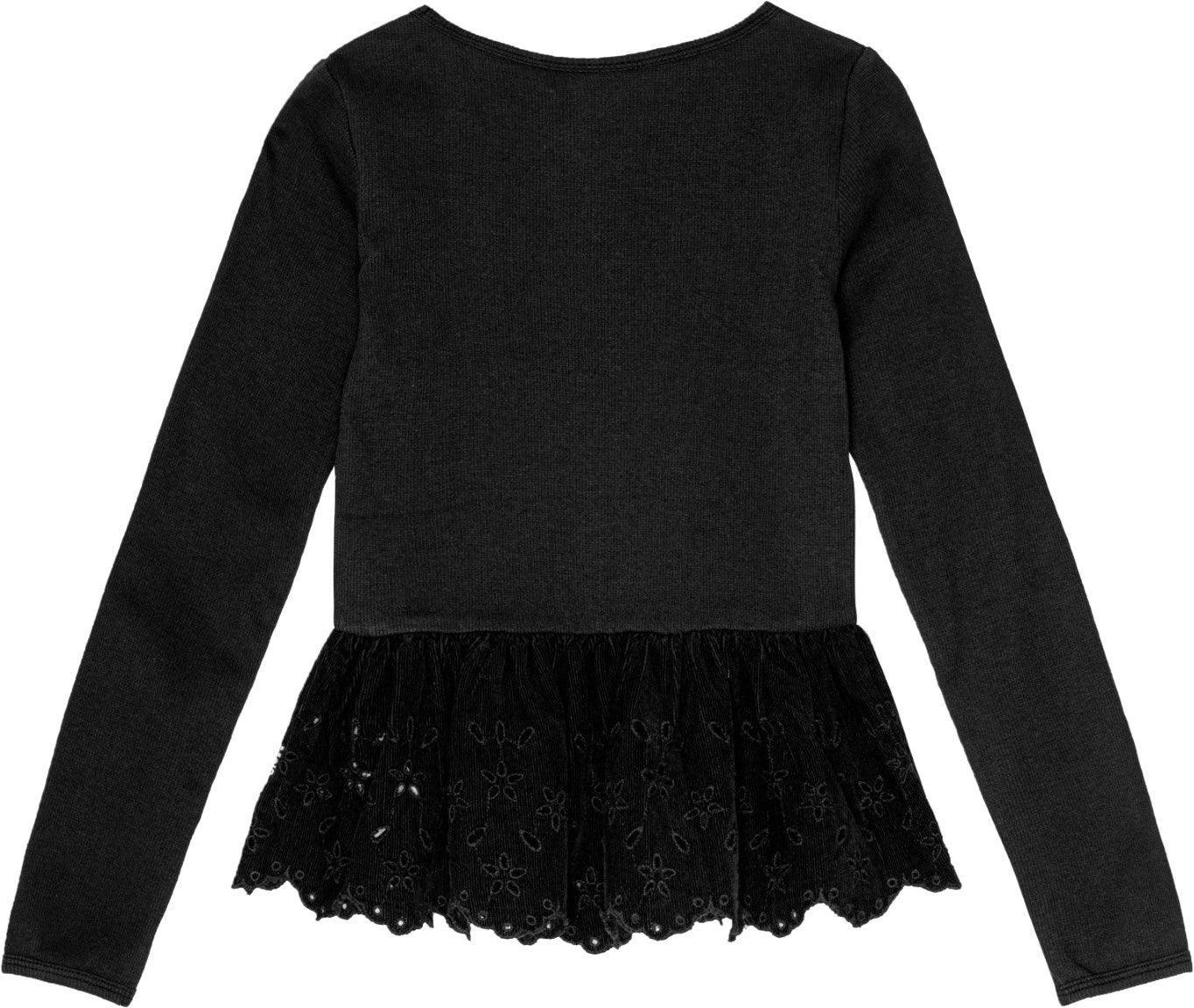 Get ready for some serious flower power with the Riana Black Long Sleeve Top from Molo! Made with 95% organic cotton and 5% elastane, this fitted top features a playful corduroy ruffle trim and a unique flower pattern cutout. Perfect for trendsetting tweens who care about the environment and love to stand out in style.