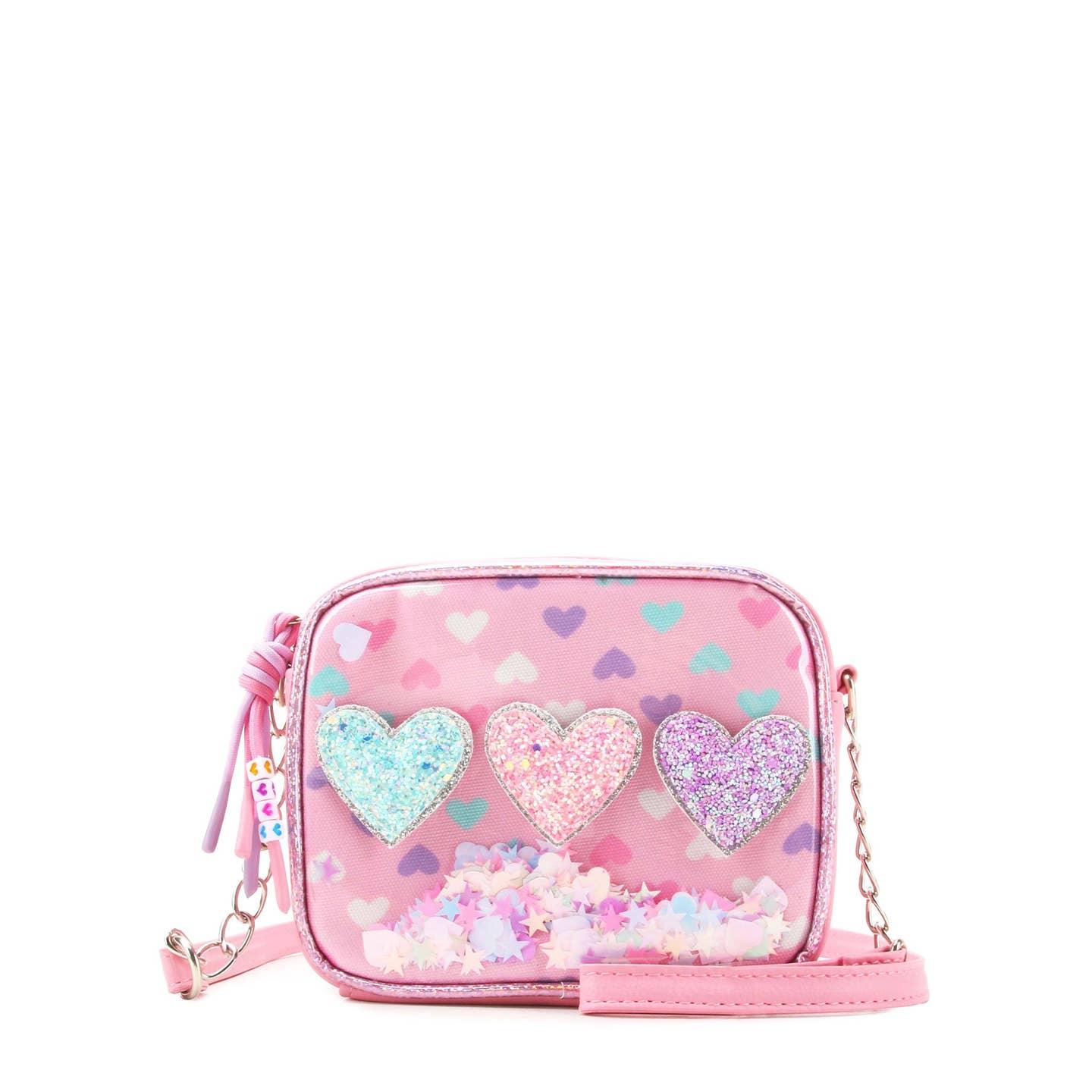 Make every day a party with this cheerful, pink confetti crossbody! With its sequin heart patches and colorful matching confetti, this cute and compact wardrobe essential will add a festive flare to any mini's closet. With a pink adjustable crossbody strap for the perfect fit!