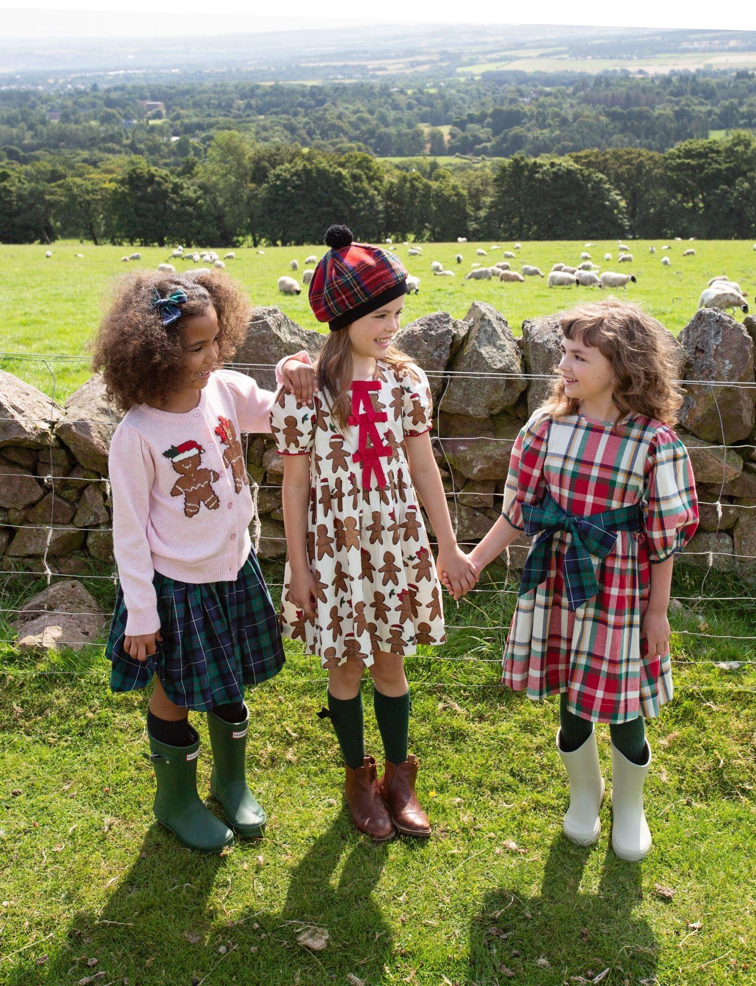 We are so excited for a fresh take on holiday dresses and we are trading in our usual Santas and Nutcrackers for gingerbread boys and girls.Ā  This dress is cotton, comfy, easy to wear and oh so FESTIVE! Bring on all of the Holiday spirit and gingerbread accessories.Ā