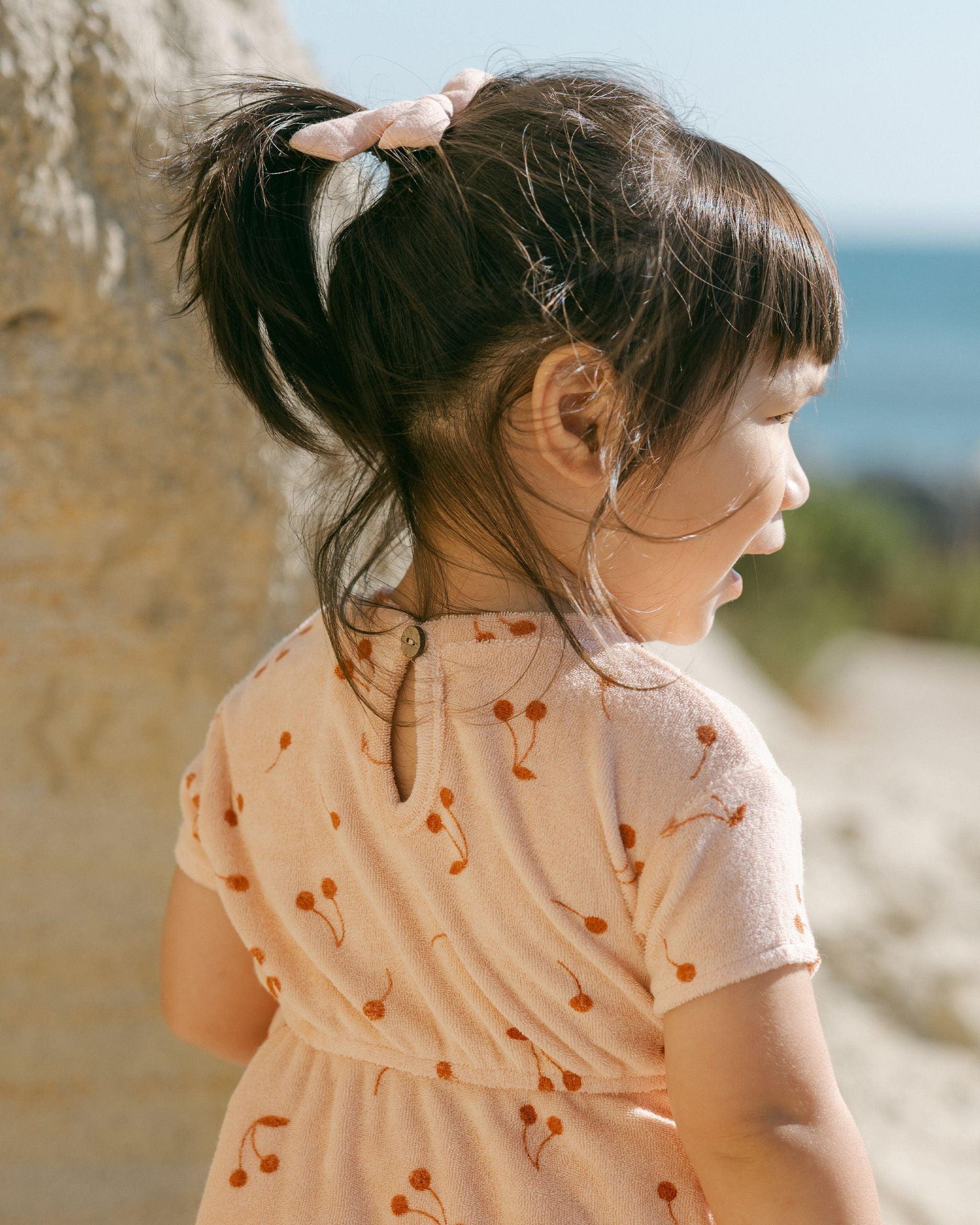 This sweet dress made of our terry cloth fabric features ruffle trim, an elasticized waist, and a button keyhole closure for the perfect fit. Coordinating bloomers included with all sizes.
