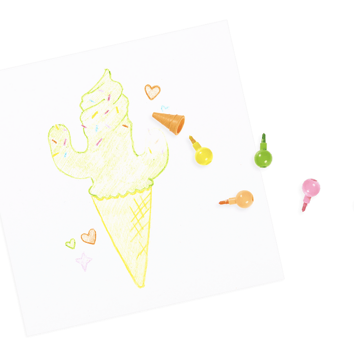 • Ice cream cone shaped stackable erasable crayons