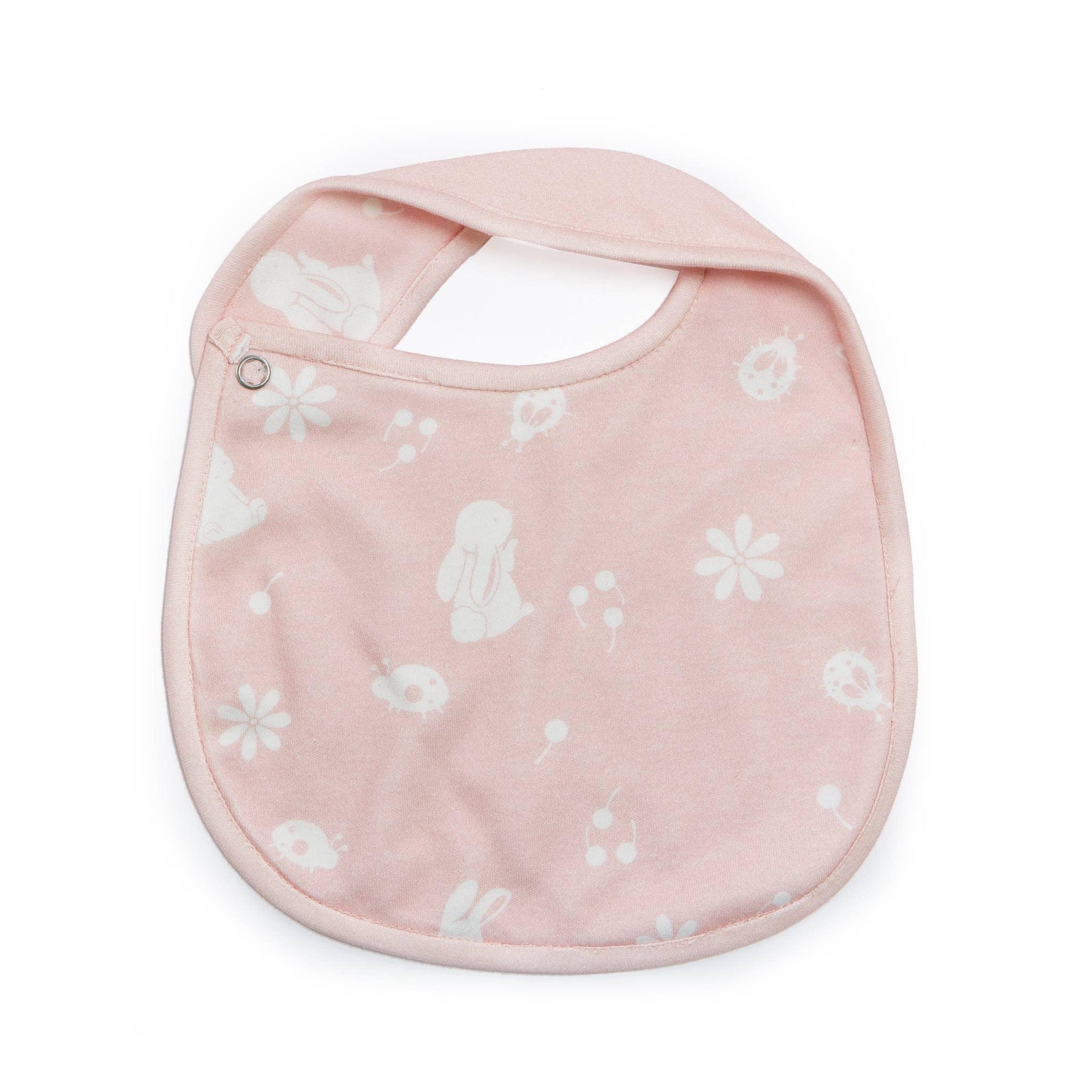 Pretty Posie Pink, With a White Darling Blossom Bunny Keep baby clean and dry with this organic cotton baby bib. Super soft fabric for wiping baby’s sensitive skin
