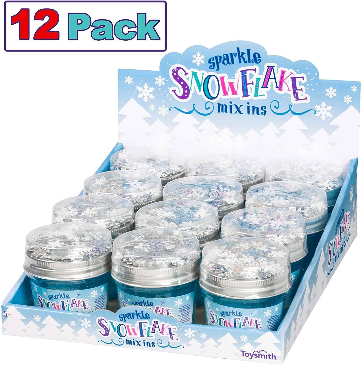Let it snow in sparkly slime, with this cool as ice take on Toysmith's best-selling line if slime mix-ins. You will receive a display of twelve 5.5 oz. of glittery slime containers, topped with silvery, snowflake confetti. Recommended for age 5 years and up.