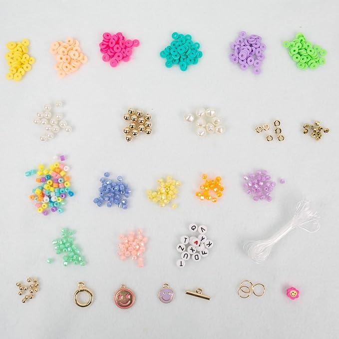 • SET INCLUDES: 702 Beads for Bracelet Making, 42 Alphabet Beads, 5 Bundles of Elastic, 2 Charms, 1 Vial of Seed Beads (.75oz), 2-Piece Toggle Clasp, 1 Project Booklet
