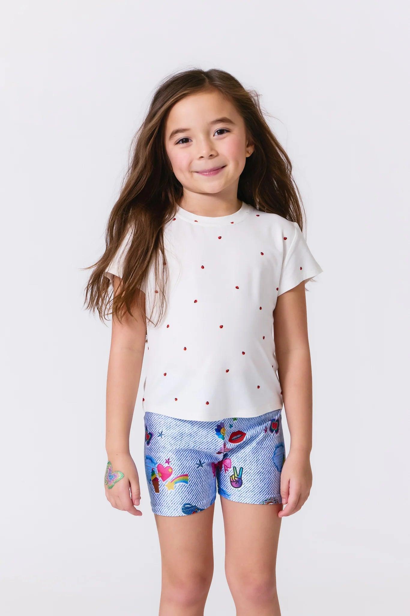 Stay stylish and comfortable with our Lucky Lady Bugs Rayon Tee from Terez! Its soft and drapey fabric makes it perfect for girls on the go, with a comfy fit that hits at the hip. This short sleeve tee is made from a blend of rayon and spandex, and is easy to clean with a simple machine wash and tumble dry. Whether for play or everyday wear, this tee is best for all activities!