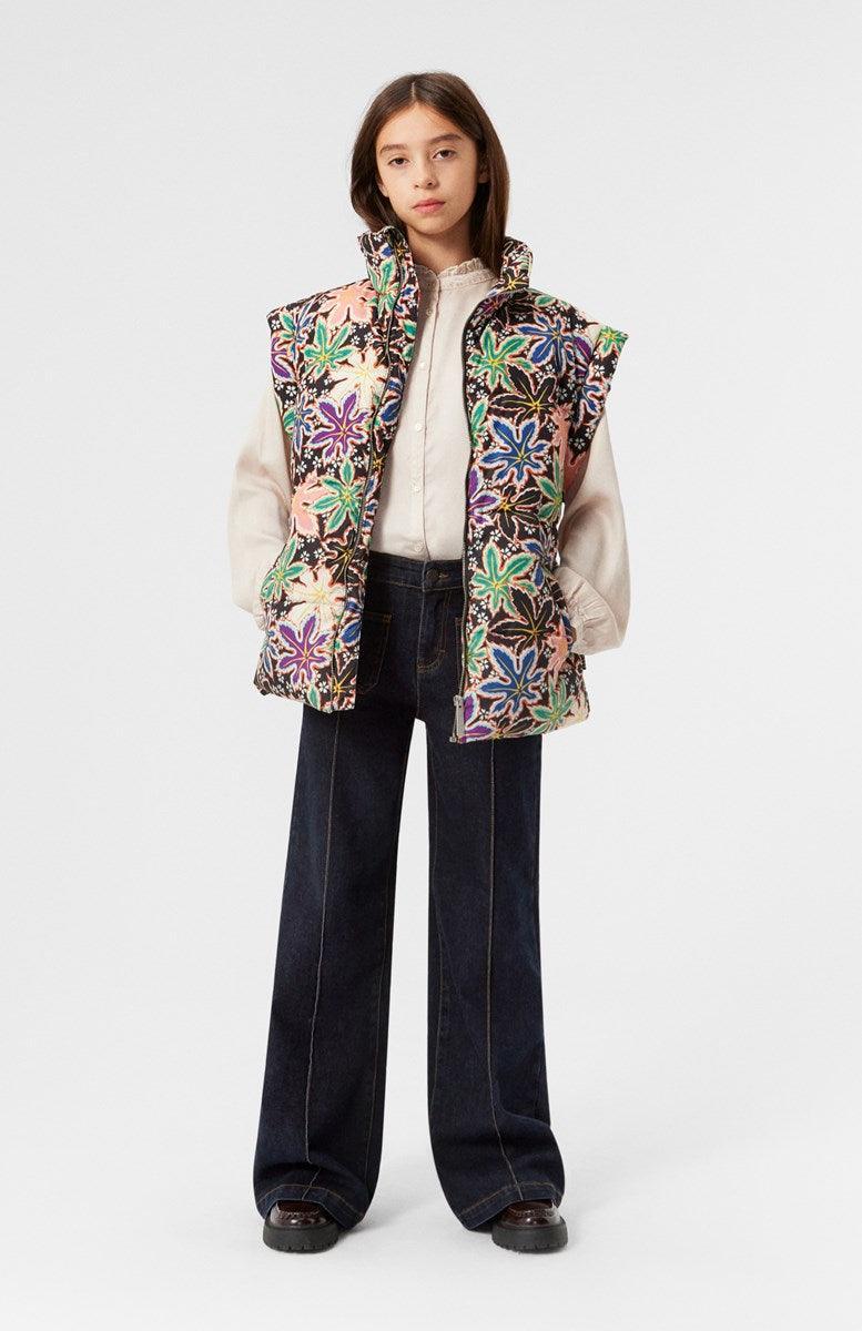 Get groovy with our Tween Bottoms Adina Dark Blue Denim Pants by Molo. Made from sustainable organic cotton, these 70s-inspired jeans feature a stitched crease, snap button closure, and trumpet-shaped silhouette. Plus, the adjustable waist ensures a perfect fit. Add some funk to your wardrobe today!