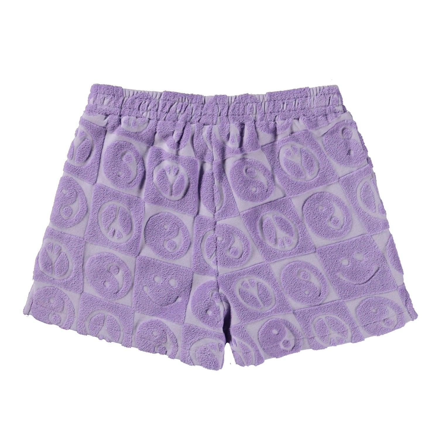 Get ready to stand out in these Angel Viola Checkerboard Shorts by Molo! Featuring a playful checkerboard smiley and peace sign pattern, these terry cloth shorts are perfect for your quirky tween. With their unique design and comfortable viola fabric, these shorts from Molo will be a favorite in their wardrobe.