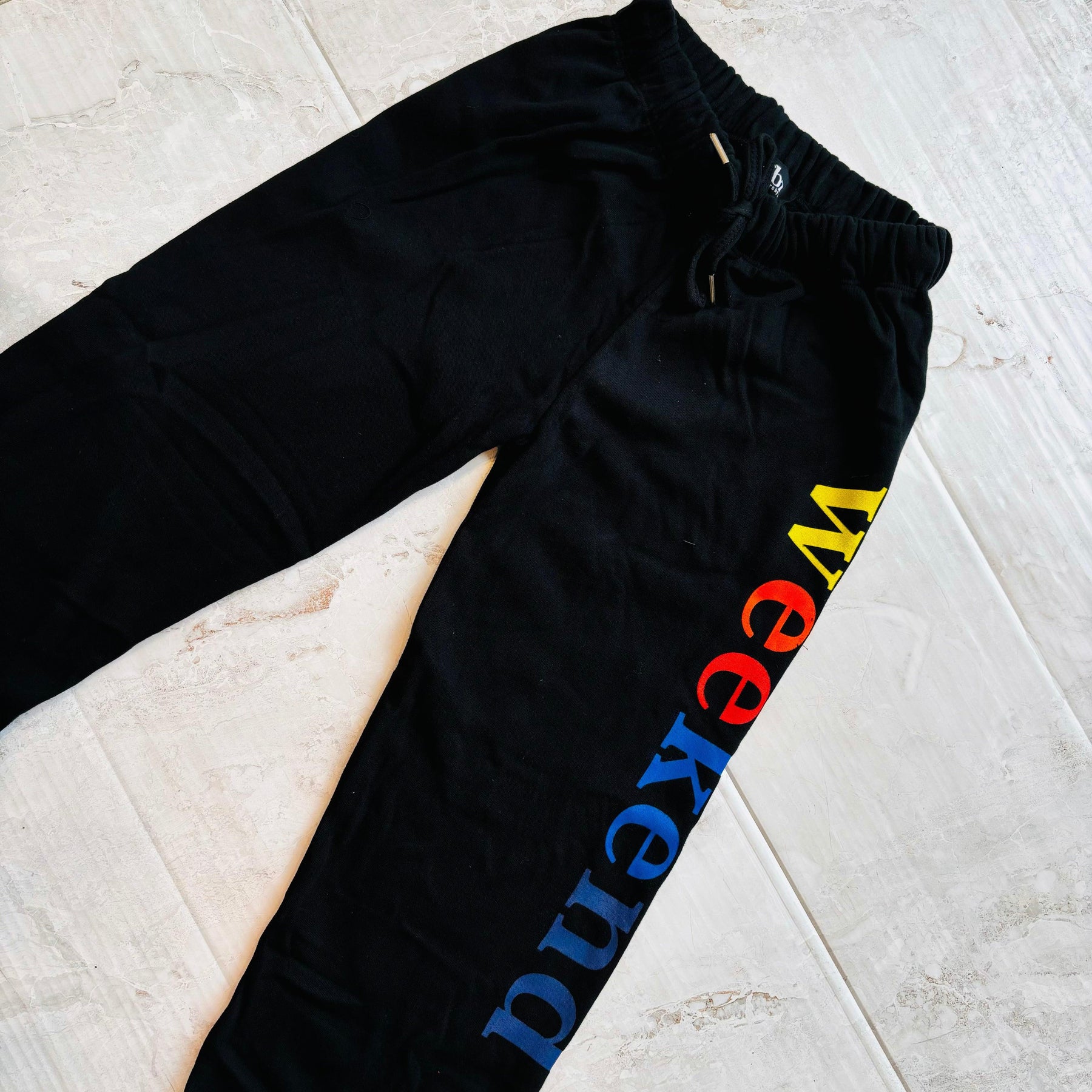 • Weekend Graphic on Sleeve on Sweatshirt and on Leg of Sweatpant