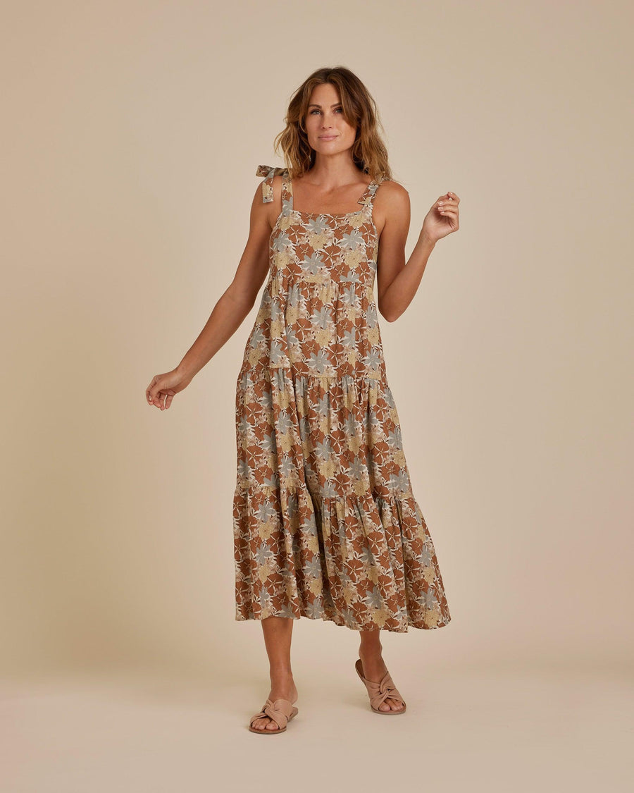 Rylee and Cru's Harbor Dress is crafted from a lightweight blend of 55% linen and 45% viscose and features a classic safari floral all-over print. With smocking at the back and adjustable self-tie straps for a custom fit, this garment is designed for optimal wearability and comfort. This dress makes for a great Mommy and Me with the Ivy Dress. Machine wash cold and dry at a low heat, and keep in mind that minor shrinkage may occur when tumble drying.
